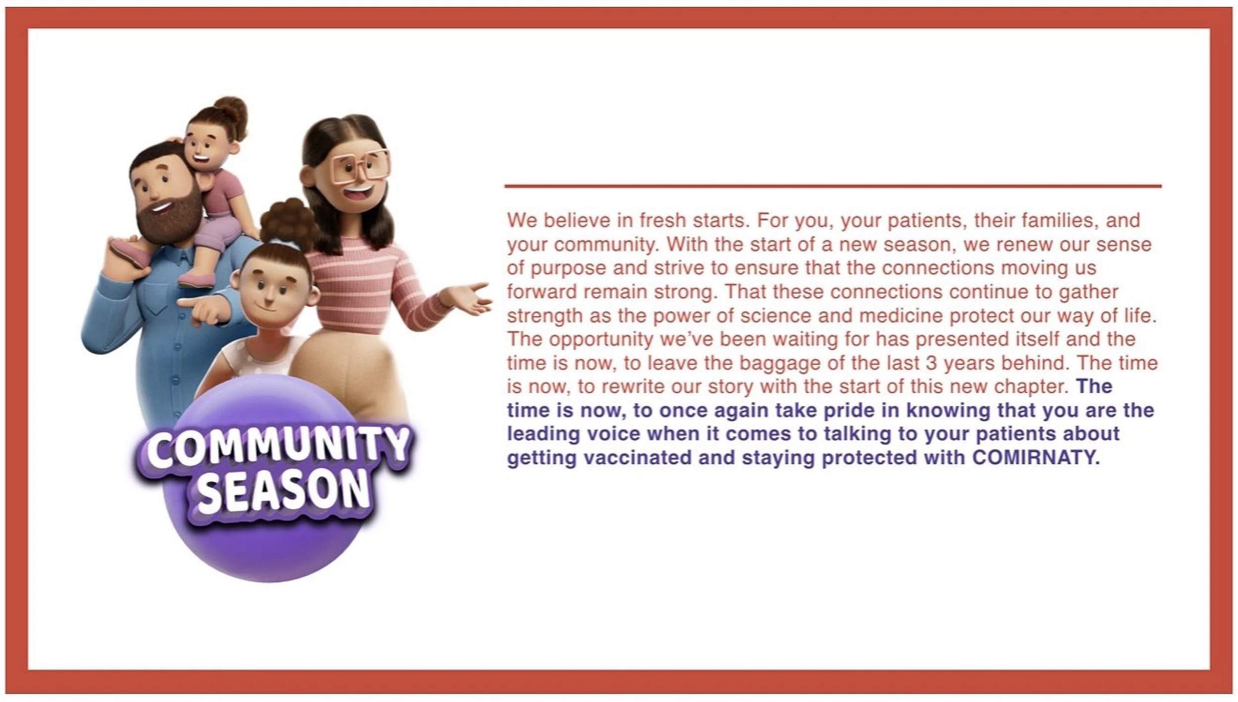 COMIRNATY - The Pfizer Vaccine Campaign Launch Video US Branded HCP Campaign Global Branded HCP Campaign Indication-specific Scenes and Characters HCP Congress Booth Avatar Generator (HCP Congress Booth Initiative) HCP Campaign Integration Revaccination Initiative for the Fall Season Next: Jardiance